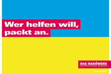 Betriebe und Soloselbstständige, die ihre Solidarität mit der Ukraine ausdrücken möchten, können das neue Motiv aus der Imagekampagne kostenfrei auf unserer Website downloaden.